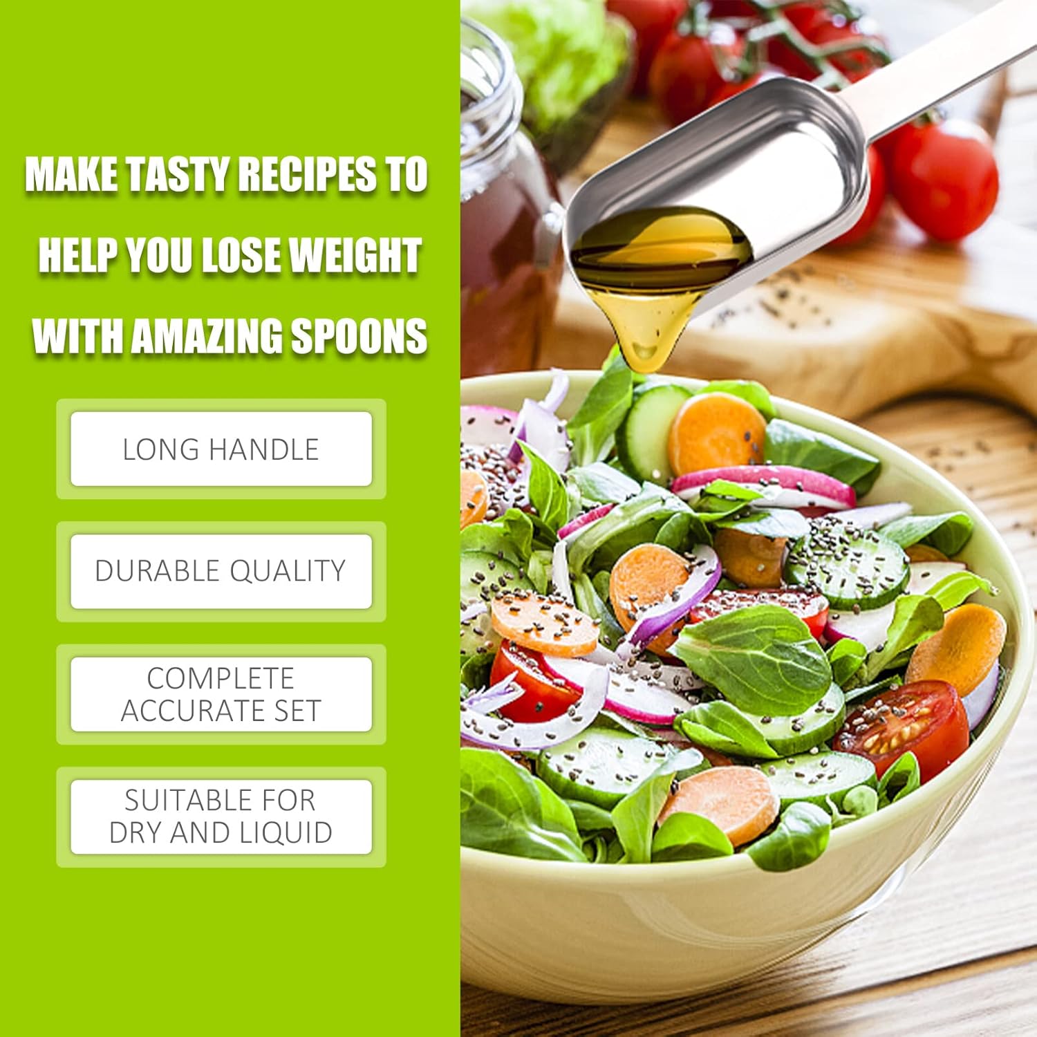 The narrow shape allows the spoon to access deep or small containers easily, reducing spillage and making it more convenient for precise ingredient measurement.