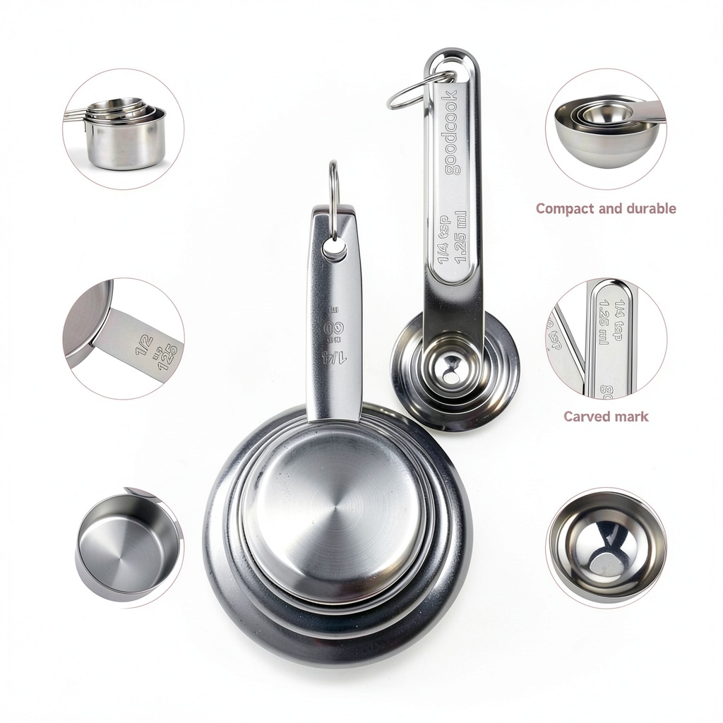 - Complete 8-piece set with cups and spoons for versatile measuring needs